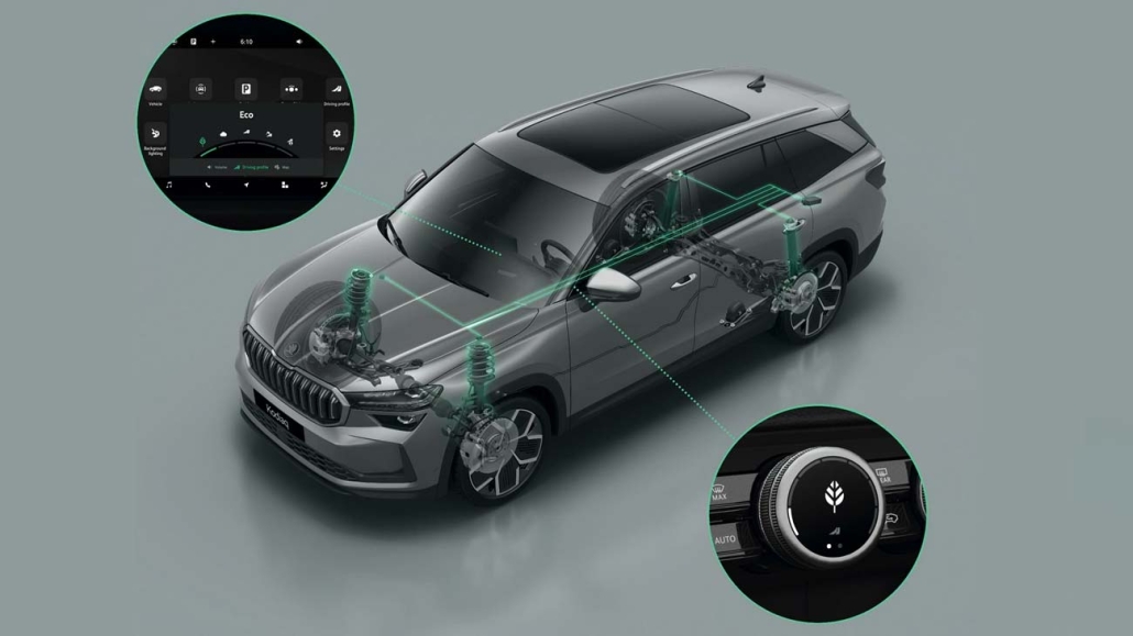 Hệ thống khung gầm thích ứng DCC Plus: Kodiaq Sportline mang đến tùy chọn hệ thống khung gầm thích ứng thế hệ mới Dynamic Chassis Control Plus (DCC Plus) đi kèm với 7 chế độ lái.