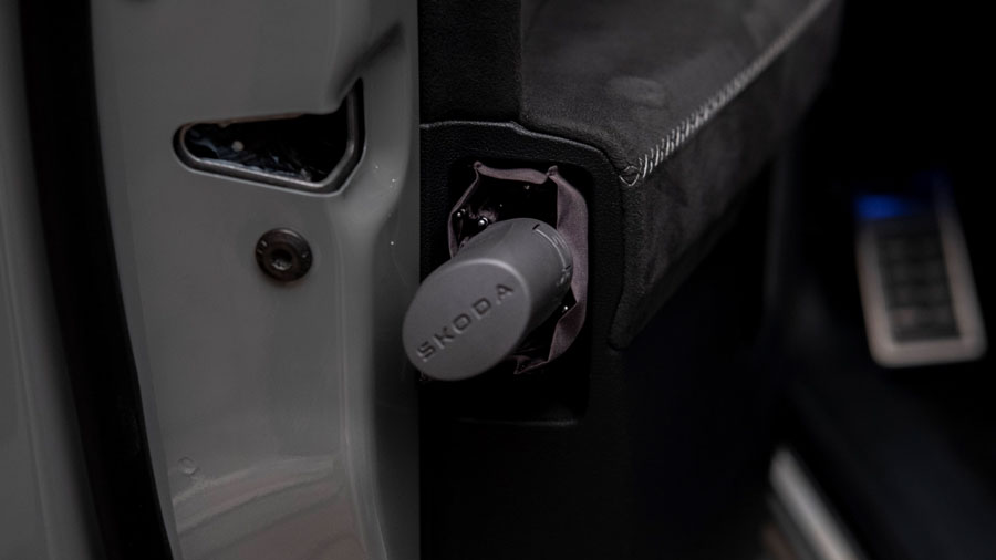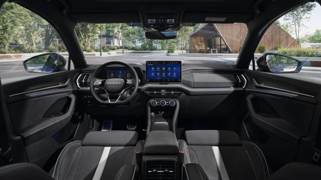 Skoda Kodiaq Sportline với khoang nội thất được thiết kế lấy người lái làm trung tâm, nơi mọi chi tiết đều được tinh chỉnh để mang đến cảm giác lái phấn khích tối đa. Vô lăng 3 chấu bọc da với logo Sportline nổi bật, kết hợp cùng ghế ngồi thể thao bọc da Alcantara cao cấp – chất liệu được ưa chuộng trong các mẫu xe hiệu suất cao nhờ độ bám tốt và khả năng ôm sát cơ thể ngay cả khi vào cua. Bàn đạp thể thao bằng nhôm sáng bóng cùng các chi tiết nội thất được hoàn thiện tỉ mỉ, tất cả sẵn sàng để bạn tự tin làm chủ mọi hành trình.