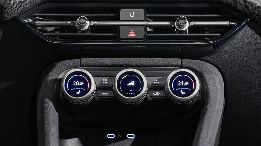 Nút xoay thông minh Skoda là sự kết hợp hoàn hảo giữa trải nghiệm điều khiển trực quan và sự linh hoạt của màn hình cảm ứng. Bạn có thể sử dụng màn hình hiển thị ở giữa nút xoay để chọn chức năng hoặc đọc thông tin, đồng thời sử dụng các nút xoay để điều chỉnh nhiệt độ, âm lượng hoặc tốc độ quạt một cách dễ dàng.