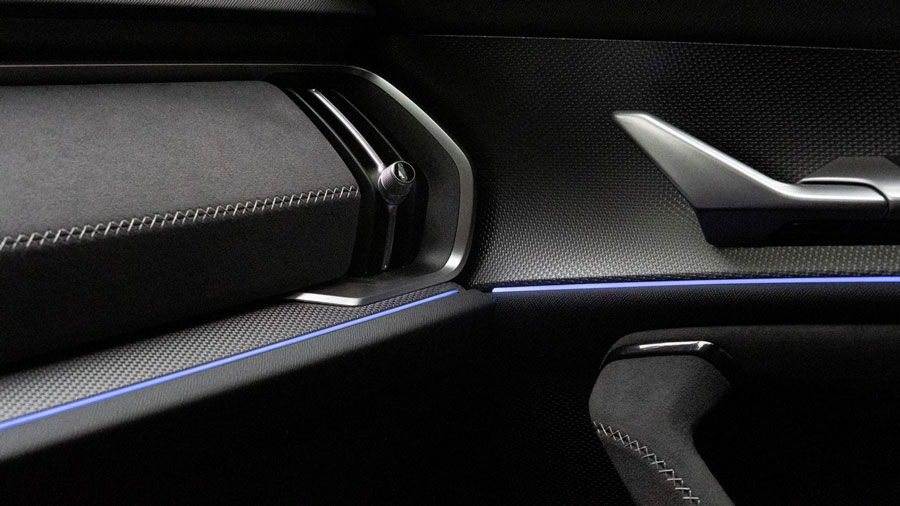 Ghế ngồi thể thao: Được thiết kế rộng rãi, mang đến cảm giác thoải mái tối đa cho người sử dụng. Tựa đầu tích hợp liền mạch cùng gờ bên nhô cao, ôm sát cơ thể, cho phép bạn tự tin làm chủ tay lái ngay cả khi vào cua gấp. Sự kết hợp hoàn hảo giữa da Alcantara và lớp Suedia đục lỗ với đường viền xám chạy dọc thân ghế tạo nên điểm nhấn tinh tế, tôn lên vẻ ngoài ấn tượng và đậm chất thể thao cho không gian nội thất